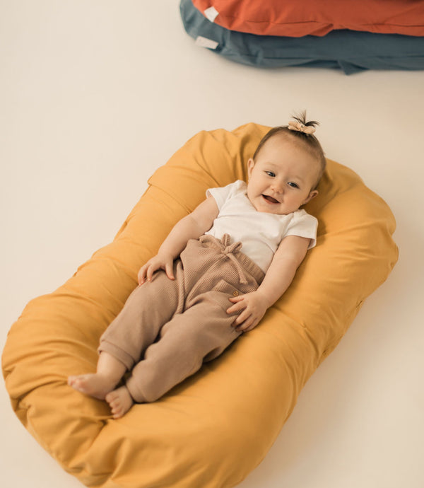 Place the baby in the center of the nest to relax. The nest's unique hugging sensation will comfort them, mimicking the feeling of being in the womb.